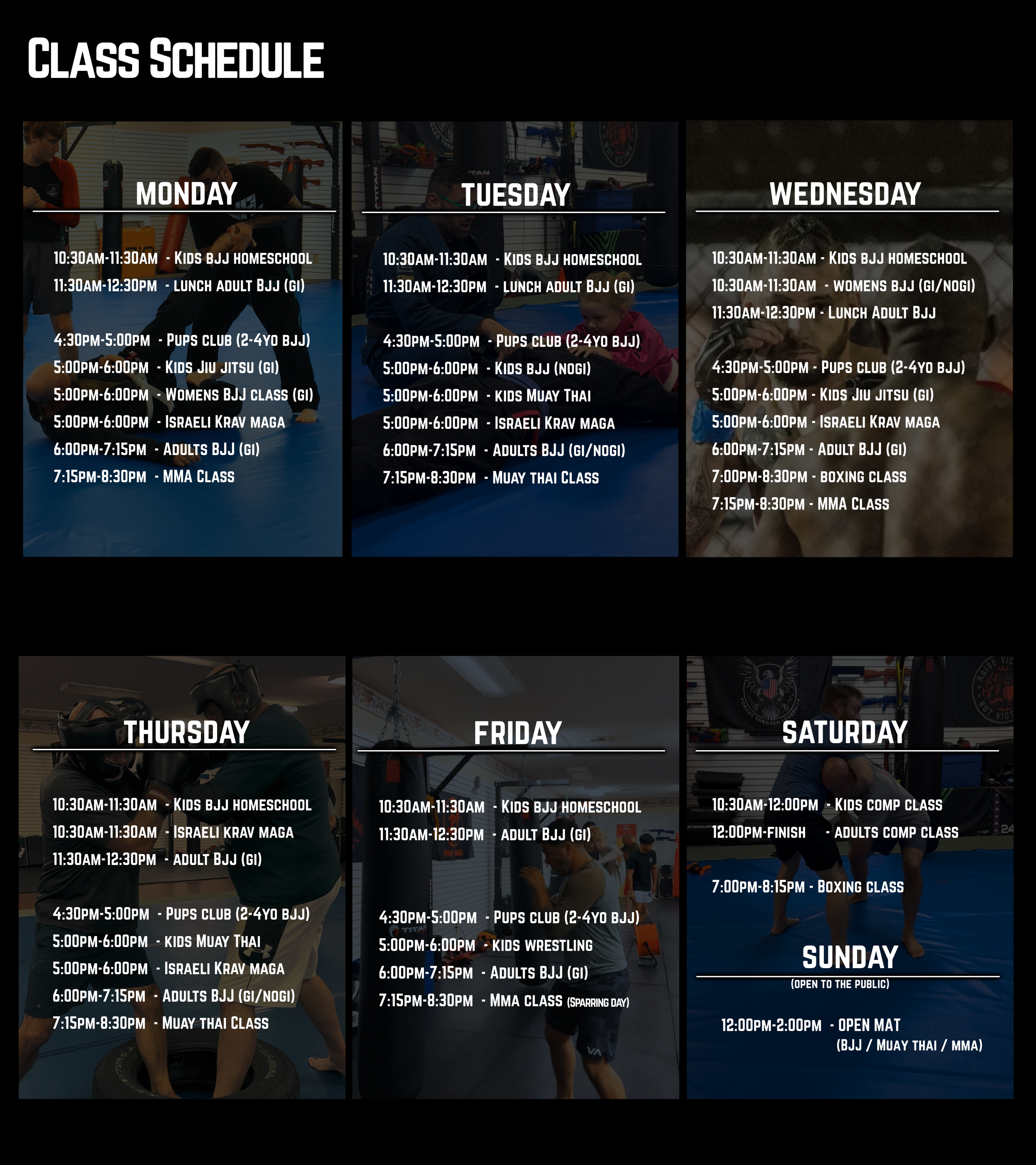 Brazilian Jiu Jitsu 〰️ Israeli Krav Maga 〰️ Muay Thai 〰️ MMA Program 〰️ wrestling 〰️ boxing 〰️